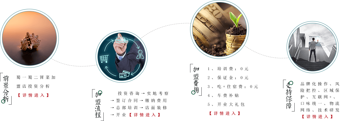 至今,蜀一蜀二一直秉承創始人“開一個店,就要活一個店”的宗旨,不斷在提升加盟商經營能力和味型上花時間、花功夫、花心思,想盡一切辦法、動用一切資源讓信賴我們的加盟商不僅能養活一家人、陪伴一家人,還能增加存款,是我們終身追求!??MORE →